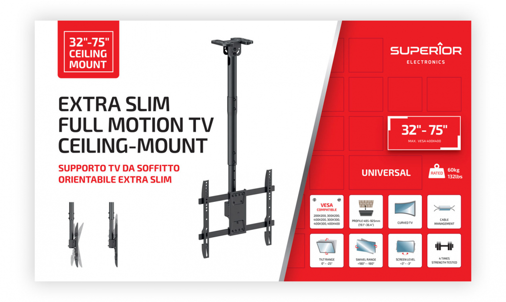 TV-MODELL: 32-75 Extra Slim Full Motion Deckenhalterung