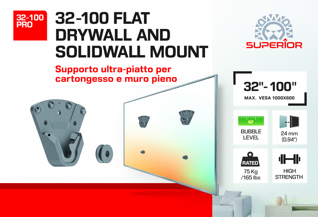 VESA COMPATIBILE: 150×100, 200×100, 150×150, 200×200, 300×200, 400×200, 300×300, 400×300, 600×200, 400×400, 600×400, 800×400, 600×600, 1000×400, 800×600, 900×600, 1000×600